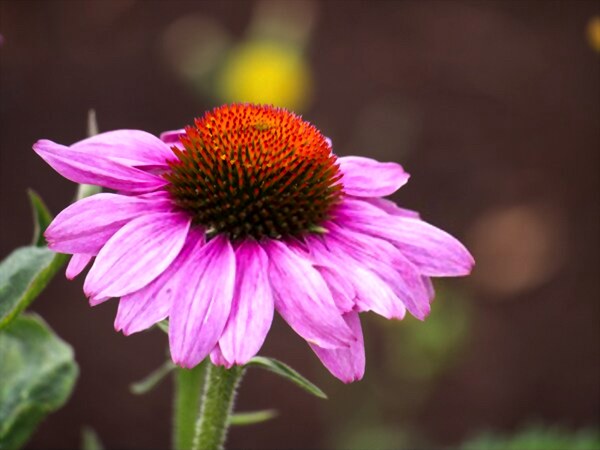 La equinácea es una planta herbácea perenne con tallos cortos y no ramificados, hojas estrechas en una roseta basal. El delgado tallo floral de la equinácea puede tener hasta un metro de altura y lleva una sola cabeza con pétalos de color púrpura claro (flores ligadas) que caen hacia abajo. Originaria de los Estados Unidos, ahora ampliamente cultivada.